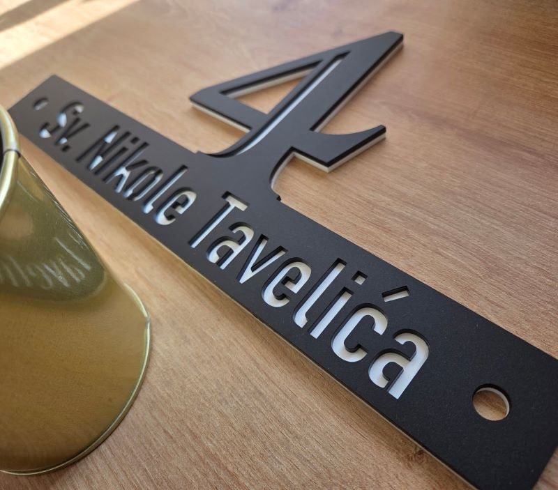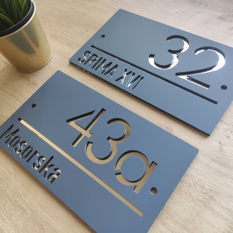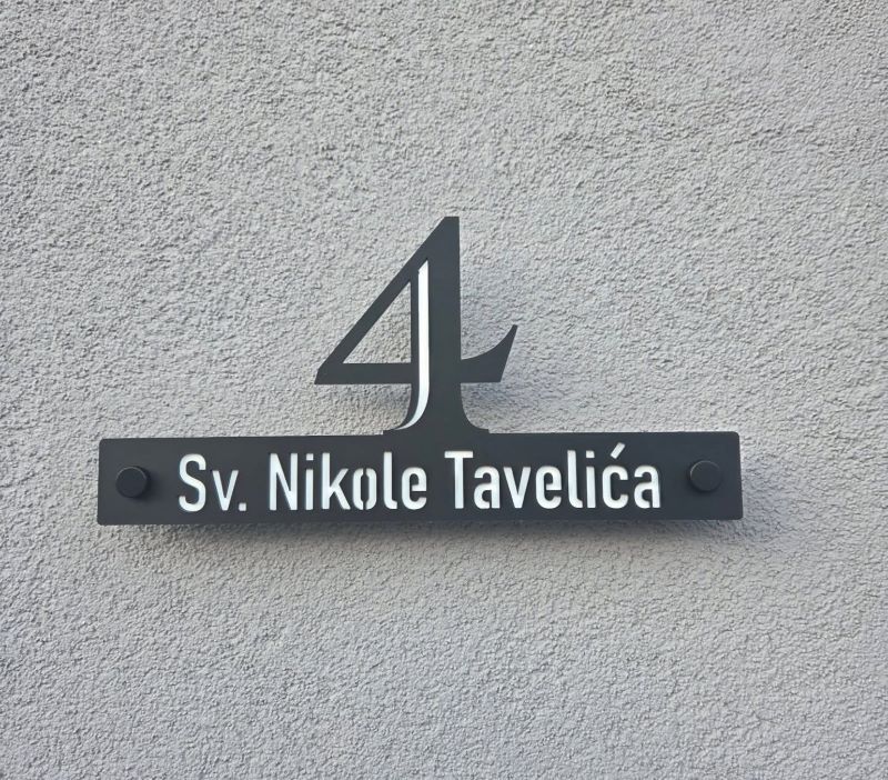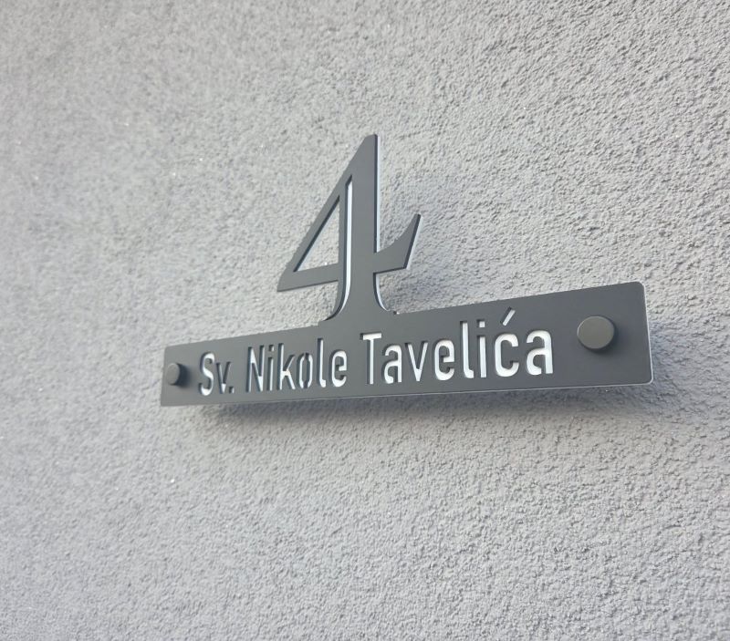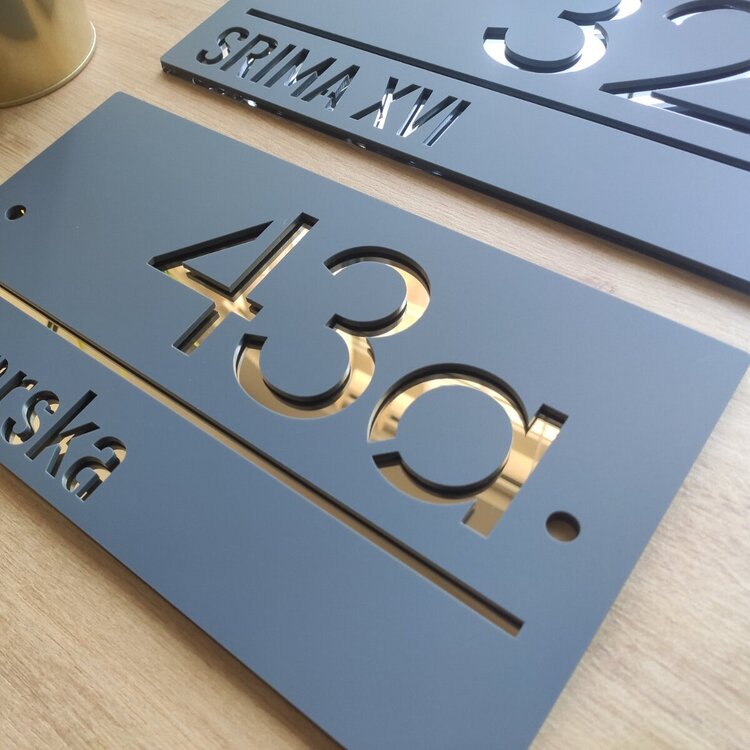 Kućni brojevi modernog izgleda, izrađeni od duplog pleksiglasa.